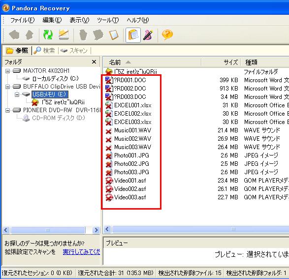 ファイル名もほとんど復元できています。