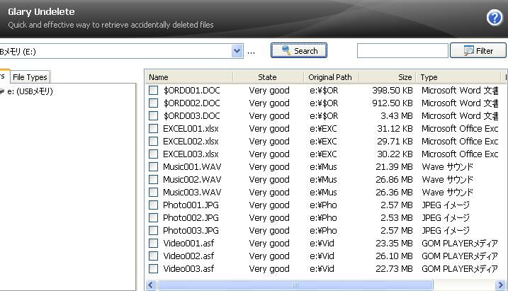 次にGlary Undeleteを試してみます。 Glary Undeleteの使い方